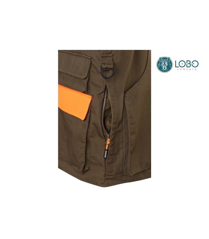 Chaleco Dove de caza con tejido 4-way stretch, ripstop resistente al agua, bolsillos para munición, bolsillo frontal con cremallera y bolsillo trasero desmontable. Forro interior resistente a líquidos.